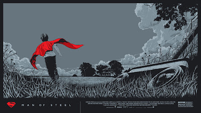 This weekend Zack Snyder’s highly anticipated live action Superman movie Man of Steel finally hits theaters and The Blot is super excited! The film’s been getting rave reviews and this might be just the kick start the DC movie universe needed to get a Justice League film off the ground. To celebrate the film’s release Mondo will be releasing two amazing Man of Steel screen prints tomorrow by Ken Taylor and Martin Ansin!